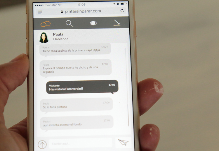 Como era la primera vez que pintaba un mueble, tras aplicar la primera capa me entraron algunas dudas así que hice una foto con el móvil y pregunté en el chat de Pintar sin parar. Me contestaron en el acto, estoy alucinada con su servicio de atención al cliente ¿Qué tienda de pinturas te acompaña en el proceso de una forma tan inmediata una vez que ya has comprado la pintura? Que yo conozca ¡ninguna! Te pongo unas fotos del antes para que veas como era la cómoda.