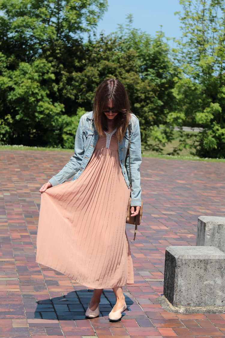 Los vestidos midi son mi debilidad en esta época del año así que recupero este modelo que tengo desde hace varios años y lo combino de una de las formas que más me gusta hacerlo con bailarinas y cazadora vaquera.