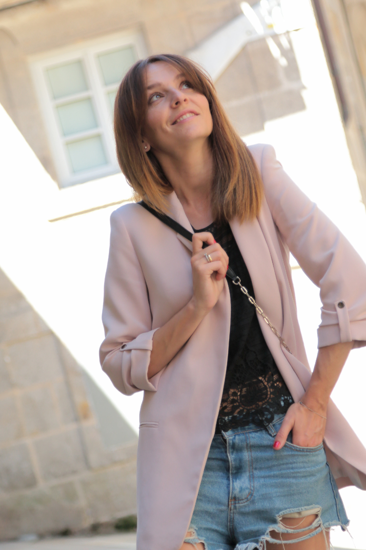 La de hoy es una combinación que me gusta mucho y que por supuesto que no es ninguna novedad, mas bien es uno de esos looks comodín que os animo a tener siempre a mano para ahorrar tiempo y esfuerzo a la hora de vestirnos. Si llevas tiempo leyéndome ya te habrás dado cuenta que me van los contrastes y este es uno más de los que poder echar mano de vez en cuando. Combinar una blazer o americana que en principio tiene un aspecto serio con un vaquero o shorts súper desgastados.