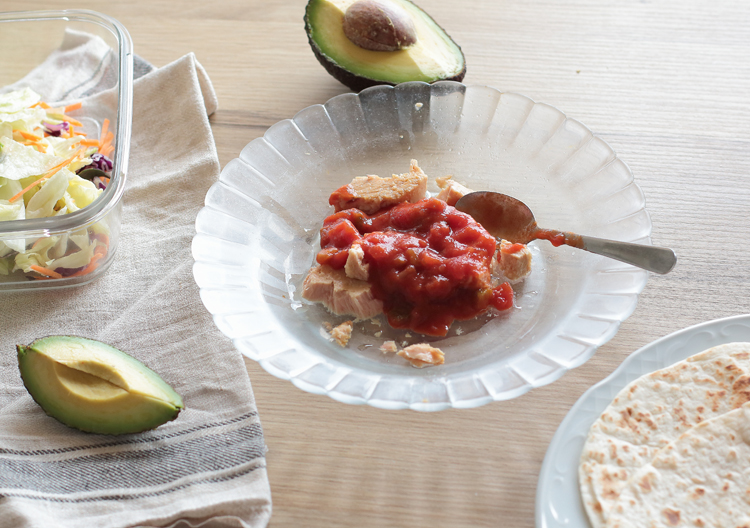 Preparación. Abrimos la lata de bonito, le añadimos 3 cucharadas de salsa de tomate picante con verduras (he utilizado la típica salsa de las dipas, concretamente chunky salsa de la marca banderos) añadimos la lechuga, zanahoria, un trozo de aguacate y removemos. En una sartén colocamos las tortillas un minuto por cada lado cuando están listas veremos se hinchan un poquito las rellenamos con la mezcla, cerramos y están listas para comer.