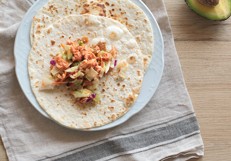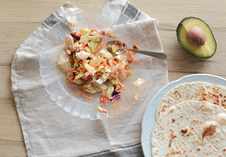 Hoy te traigo una de esas recetas ultra rápidas y en general de aprovechamiento que suelo hacer cuando van quedando restos de platos en el frigo. En realidad los ingredientes de esta receta son totalmente orientativos ya que dentro de un wrap puedes meter cualquier cosa que te apetezca: Solo verduras salteadas, sobras de carne o pescado combinado con verduras. O la que he utilizado hoy: una lata de bonito una mezcla de lechugas, zanahoria, maíz, aguacate y salsa picante.