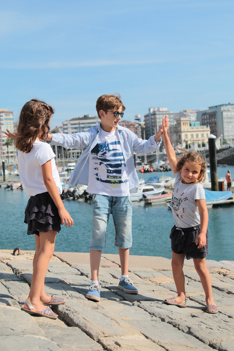 Azul marino moda es una tienda de ropa infantil, juvenil y para bebés con una selección de prendas preciosa. Marcas como Batela, Eve Children, Mía y Lia Moda forman parte de la selección elegida personalmente por Natalia el alma mater de la tienda. Su tienda física está también en Pola de Siero pero si te queda lejos desde su preciosa tienda online podrás ver cada prenda como si la tuvieras en las manos. Además Natalia es aficionada a la fotografía y se esfuerza por ofrecer una visión de la ropa cuidada y personal. En las fotos de hoy puedes ver a mis peques con prendas y calzado de ambas tiendas.