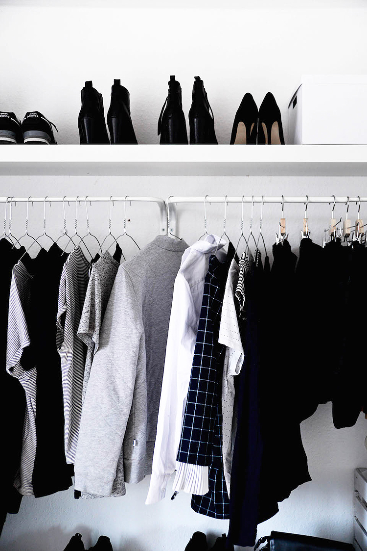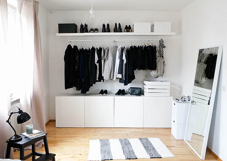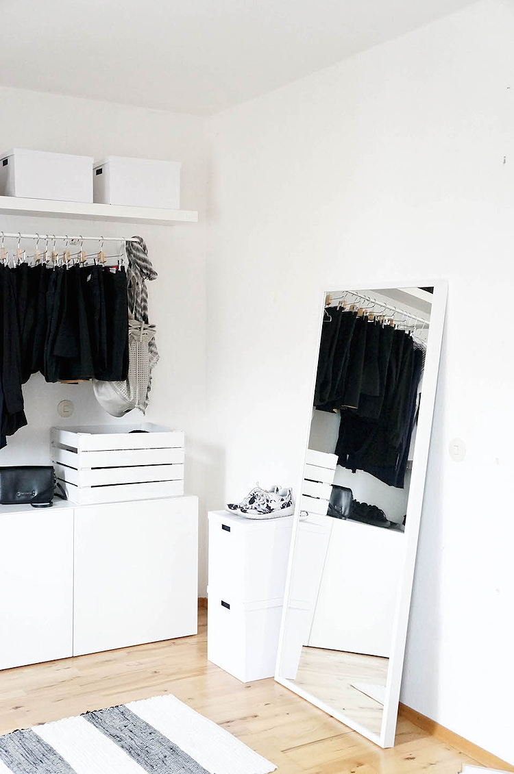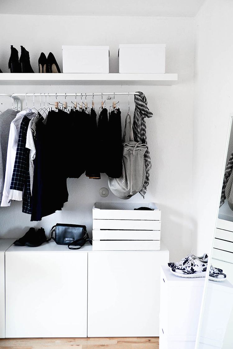 A día de hoy estoy convencida de que si tuviera que mudarme de nuevo no me gastaría ni un céntimo en armarios. Tener armarios al aire te obliga a ser mas ordenada y a tener menor cantidad de ropa. Además toda tu ropa está a la vista y es más sencillo decidir la combinación y que nada se caiga por detrás. La ropa está aireada y sin coger olores… definitivamente para mi los armarios están sobrevalorados ¡Feliz martes!