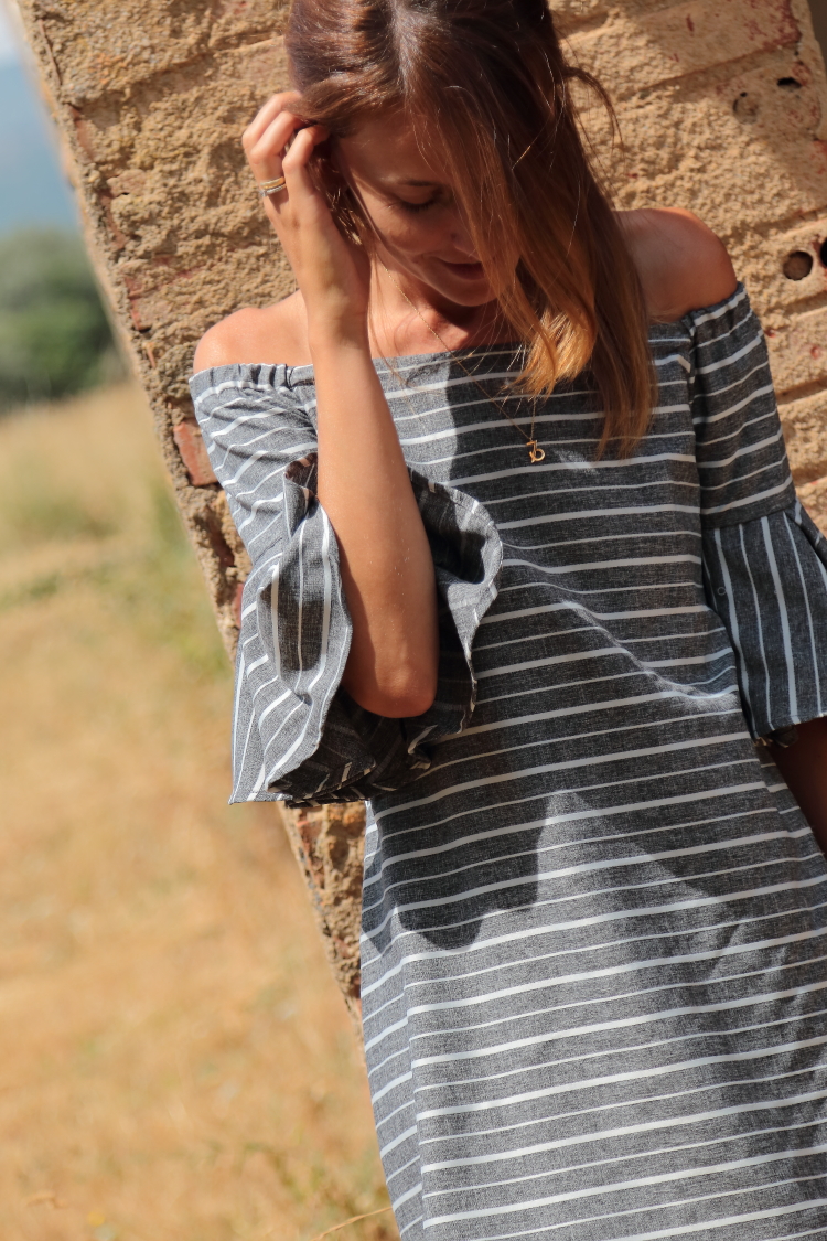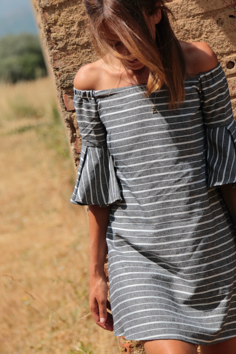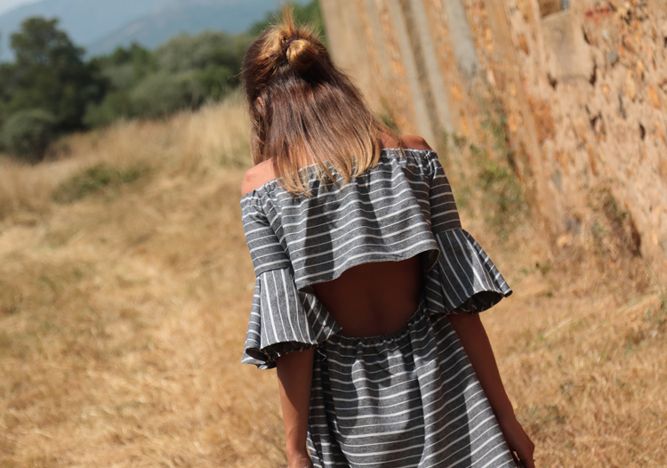 Uno de esos vestido offshoulder y con espalda al aire que puedes llevar a tu elección con o sin sujetador sin preocuparte de que se vean los tirantes, lo que lo hace la mar de cómodo ¡Feliz jueves!