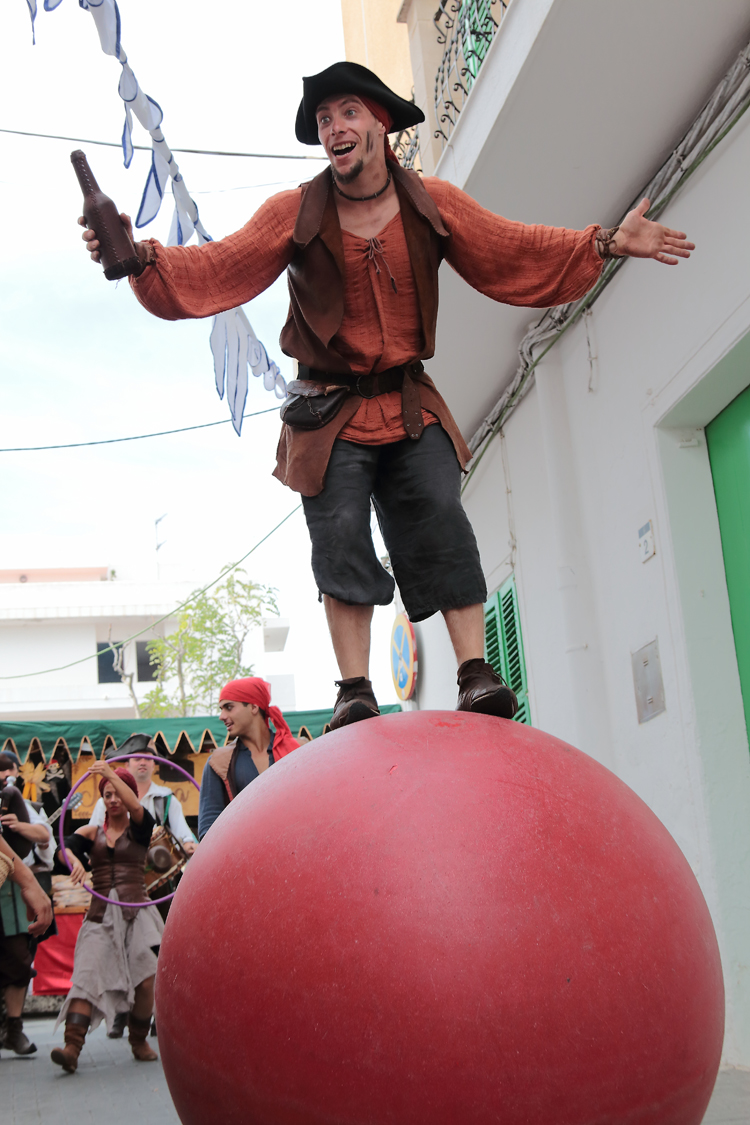 El pasado sábado nos acercamos a conocer la fiesta marinera medieval que se celebraba en las calles del centro histórico de San Antonio (Sant Antoni). Una fiesta pirata en toda regla donde hasta las vacas llevaban el atuendo correspondiente. A mis peques les llamó muchísimo la atención, están acostumbrados a ir a fiestas medievales, los exconxuraos  quedaba realmente cerca de nuestra antigua casa y no había año que no pasáramos por allí. Sin embargo la fiesta medieval de este fin de semana además de medieval era marinera y el punto de los piratas les encantó.