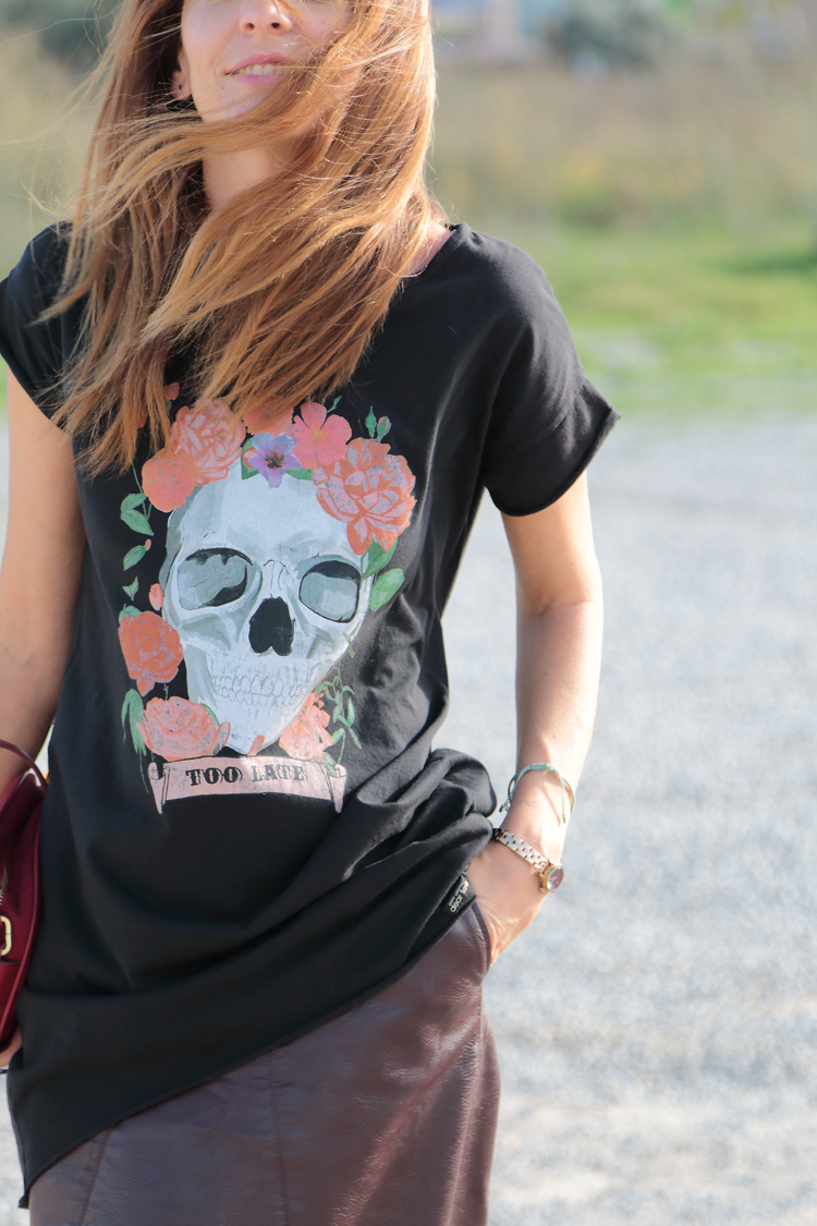 Hoy lo llevo sobre falda y con mis botines más cómodos, para el verano seguro que lo usaré solo o con shorts y por supuesto hasta que lleguen temperaturas más cálidas lo utilizaré con vaqueros, con leggings… una de esas prendas de algodón suavecito que apetece ponerse constantemente.