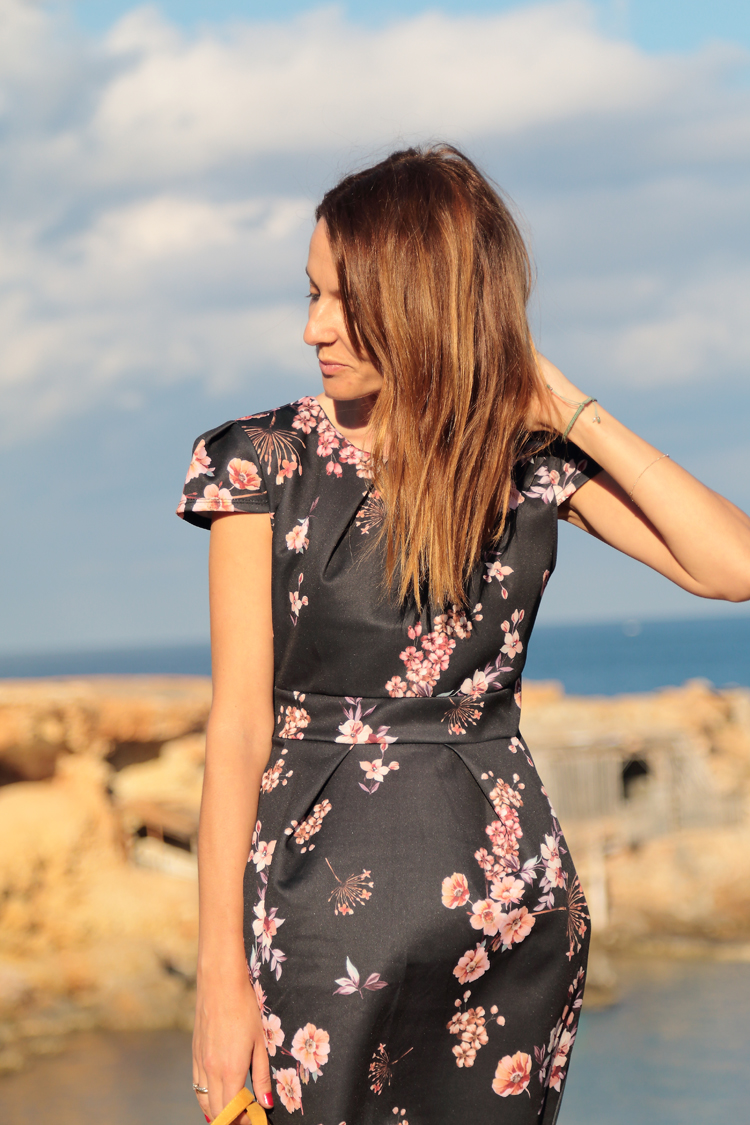 Si te pasa como a mi y te encantan los vestidos con bolsillos este que te propongo hoy seguro que te gusta, tiene un corte muy favorecedor con la manga muy cortita y ligeramente acampanada. La parte buena de este tipo de mangas es que hace un efecto óptico por el que el brazo parece más delgado, la parte mala es que aporta volumen a los hombros así que si eres estrecha de hombros o sientes que tus hombros están proporcionados te sentará fenomenal y sino sentirás que este tipo de manga te aporta un volumen en una zona donde no lo necesitas.