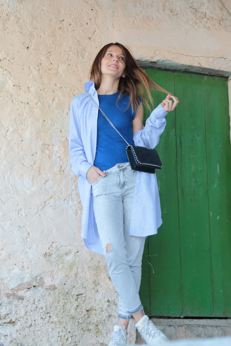 Esta camisa larga es otro de los básicos de mi armario, soy muy fan de este tipo de camisas de hecho te he enseñado varios modelos de este tipo en el blog, porque me parece que dan mucho juego tanto en looks informales como el de hoy, como en otros más formales como el que te enseñaba en esta ocasión.