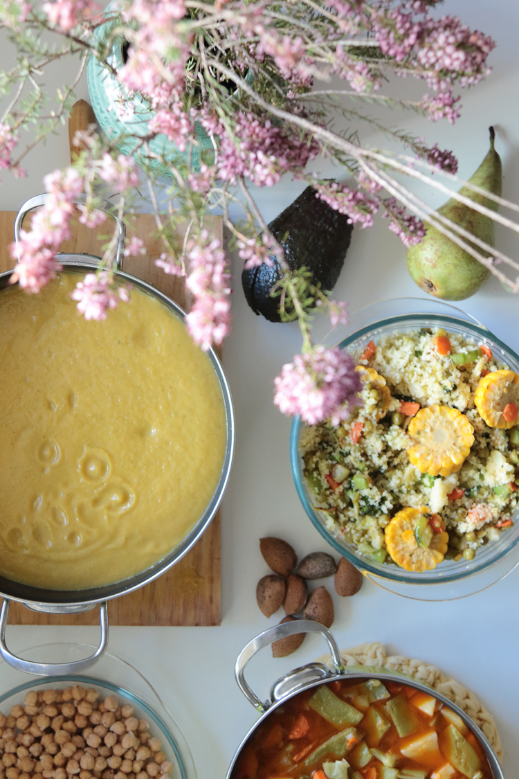 Esta semana el menú está compuesto por: crema de verduras, garbanzos, vainas, tabulé de verduras y el viernes como siempre el día de las sobras para mi no hay nada mejor para no tirar comida.  El tabulé empecé a hacerlo este verano para los picnic de playa  y se ha convertido en uno de mis platos favoritos. La crema de verduras que hago es una receta de mi suegro que básicamente consiste en incluir las verduras que tengas por el frigo pero en lugar de cocerlas ponerlas con un poco de aceite para sofreirlas y que dejen todo el sabor y cuando estén un poco doradas añadir agua justo para cubrirlas, sazonar y dejar que se hagan en la olla rápida. Ademas desde que estamos en Ibiza como podemos comprar almendras de la isla a granel, al sevirlo ponemos un chorrito de aceite de oliva y unas almendras cortadas que le da un toque buenísimo.