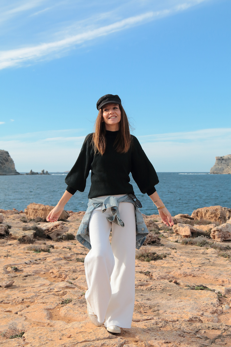 Como cada miércoles aquí tienes uno de mis look, hoy con dos prendas que aún no te había enseñado en el blog la gorra estilo baker boy de la que te había hablado en este artículo y que finalmente me trajo Papá Noel que cada año parece muy atento a mis publicaciones y un jersey negro básico pero con una forma en las mangas que me gusta un montón.
