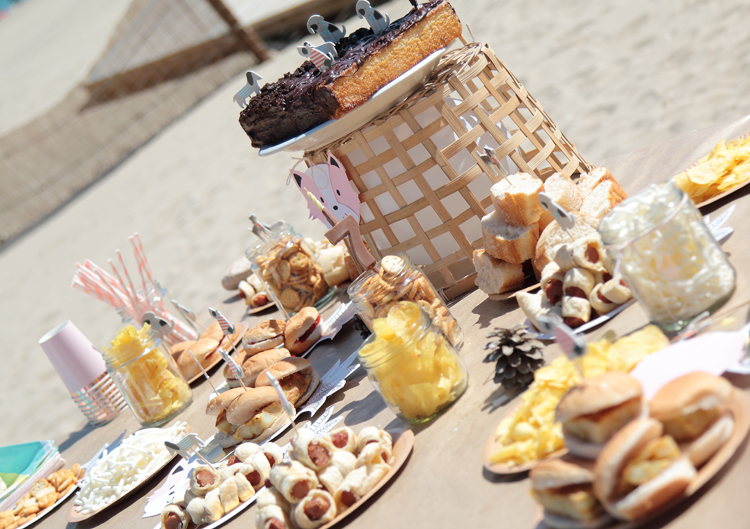 Como sabes el tema del cumple era: perritos y piñas, ideado por la cumpleañera que siempre es la encargada decidir como quiere celebrar su día especial. El mayor reto de este cumple era llevar todo lo necesario desde casa hasta la playa en un solo viaje, así que tenía que tratar de ser práctica. Me lo planteé como hacer un picnic de grandes dimensiones y tengo que decir que estoy contenta con el resultado. Podría haber llevado unas telas y unos palos y montarles una tippie improvisada al lado de la mesa pero esta vez no pudo ser, en su lugar llevamos un pareo de grandes dimensiones,un balón, tizas de colores,un paipo que hizo que se animaran a darse un baño, cubos y palas y por supuesto el súper globo y la comida ¡Aún no sé como entró todo en el coche!