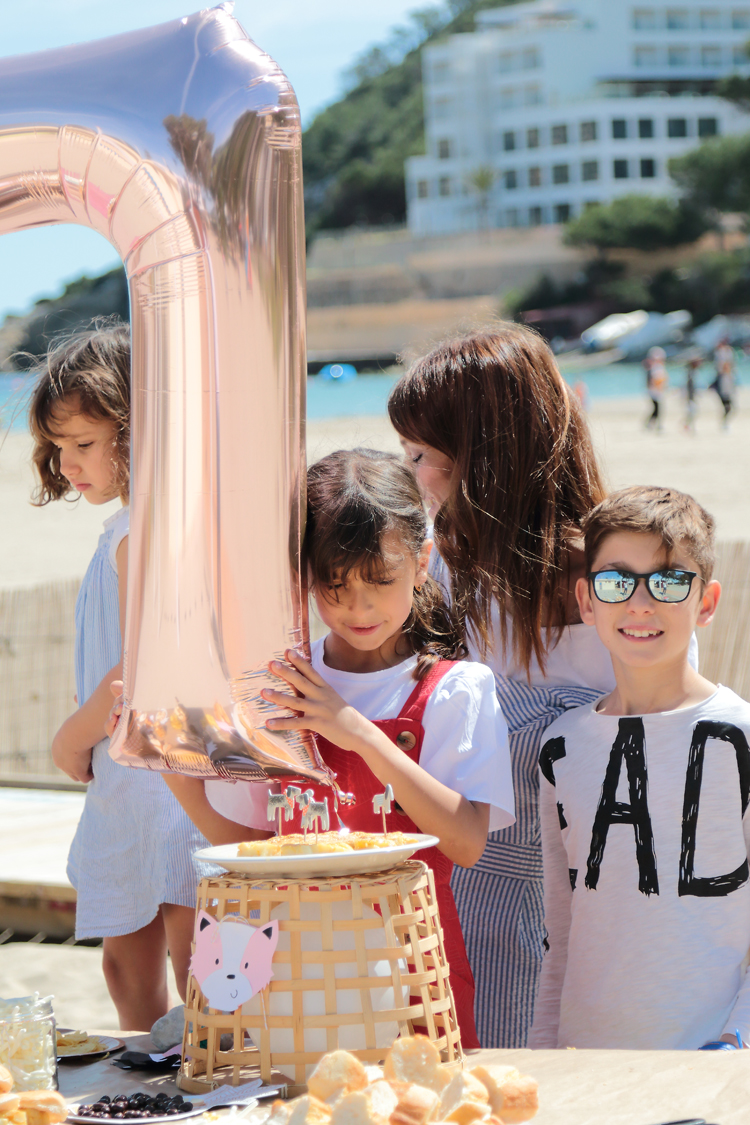 Ayer celebramos el cumple de Ariadna ¡7 años ya! Se que en cada cumple de mis peques digo lo mismo pero, ¡cómo pasa el tiempo! Ariadna quería celebrar el cumpleaños con sus amigas en la playa y a mi me pareció un plan estupendo. Mi premisa para este cumpleaños era complicarme la vida lo menos posible, aprovechar el entorno maravilloso que nos ofrecía cala Llonga y de ese modo invertir menos horas en los preparativos.