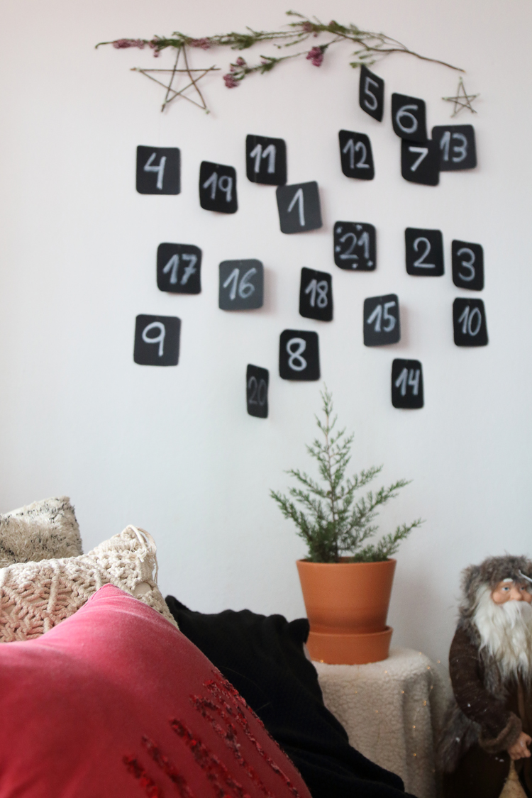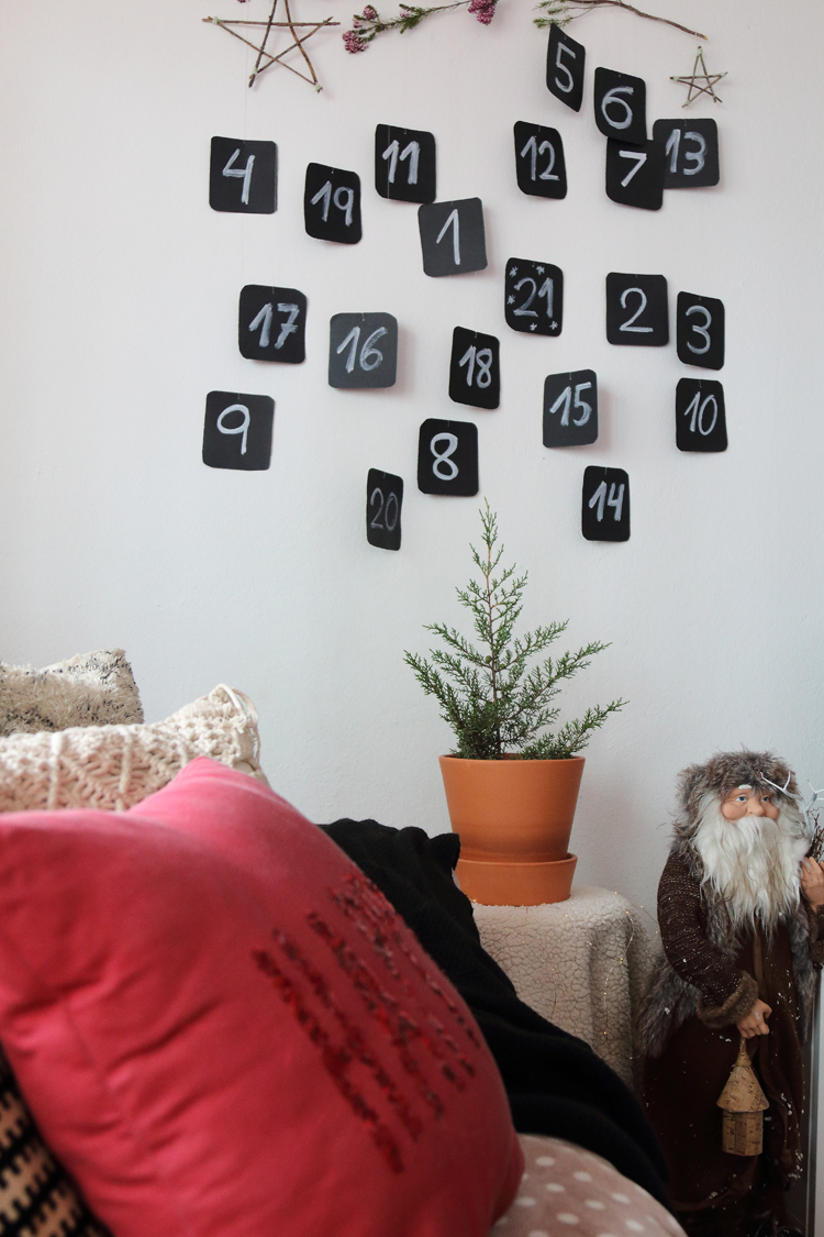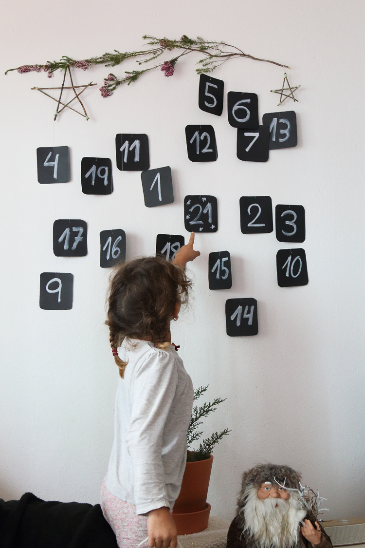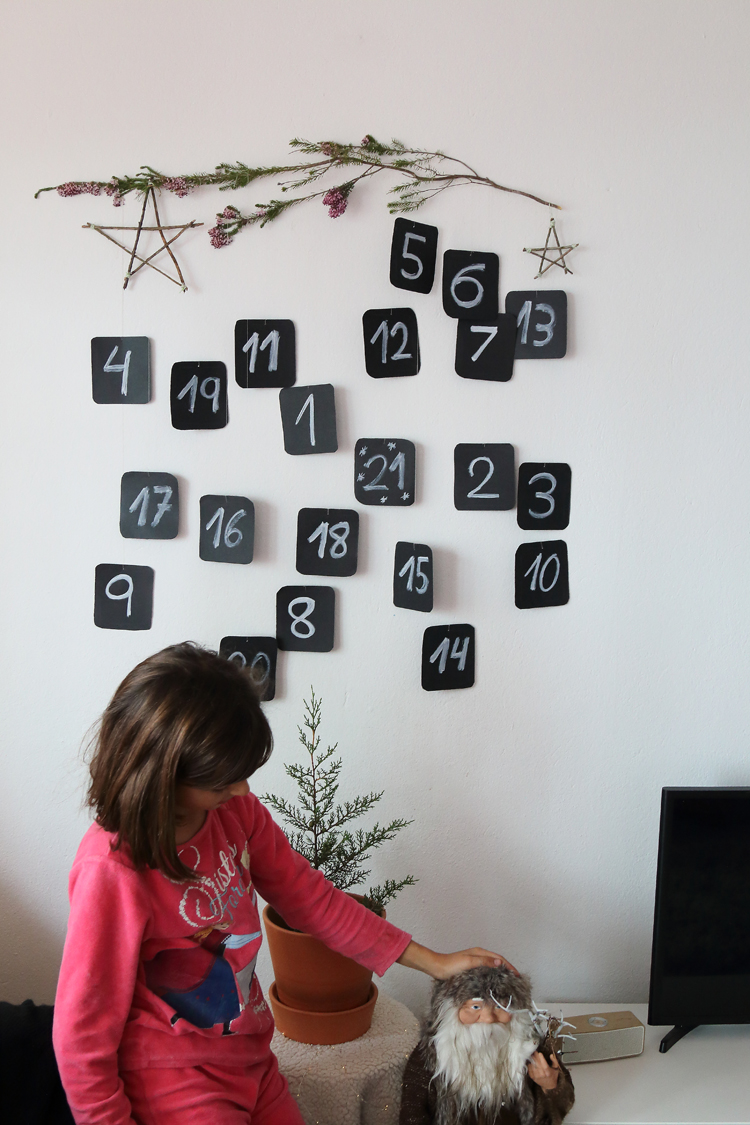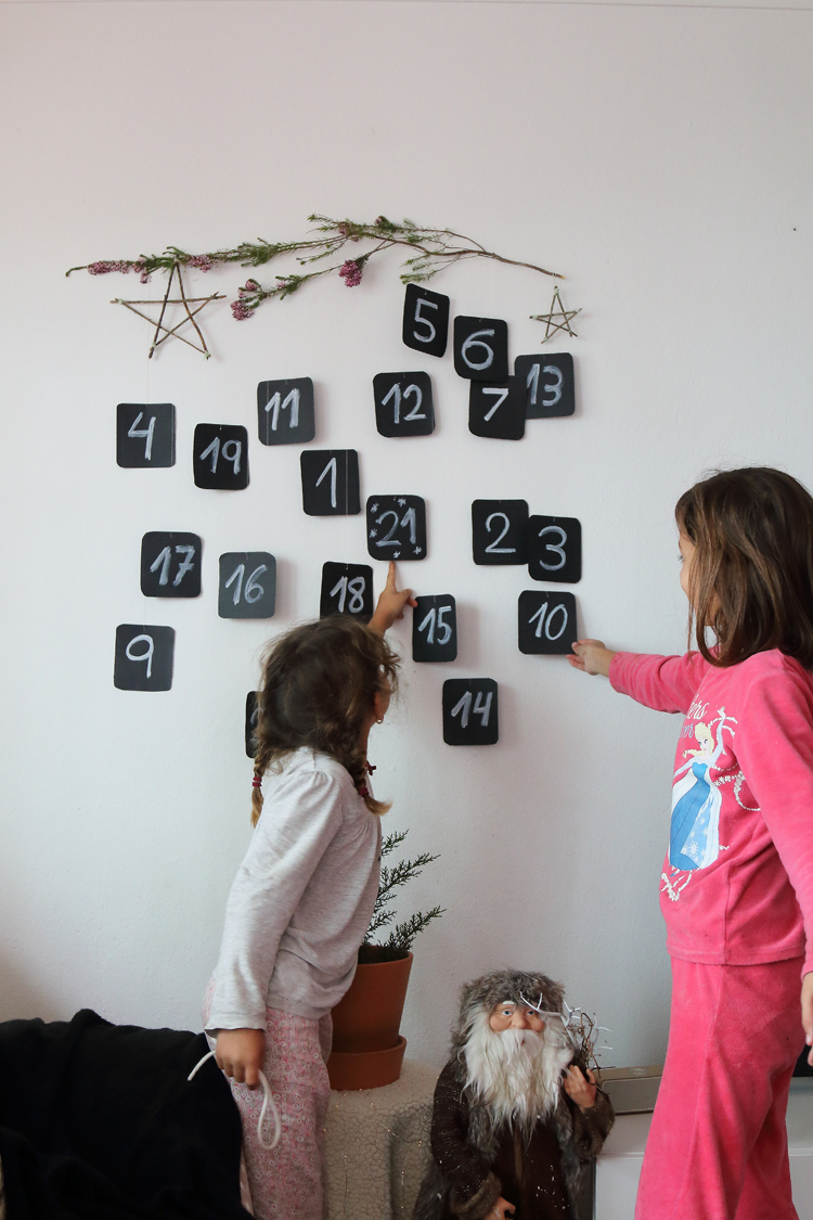 Como te contaba hace varias semanas en este artículo, este año vamos a esperar a que lleguen las vacaciones de Navidad contando los días con un calendario de adviento, lleno de planes, actividades y algún regalito. Como te comenté teníamos un modelo que nos gustaba mucho y guiados por el hemos hecho nuestra propia versión. Una versión en la que mis peques han participado escribiendo los números, cortando las tarjetas y yo me he encargado de colgar cada una en la rama y escribir las sorpresas en el dorso de las tarjetas.