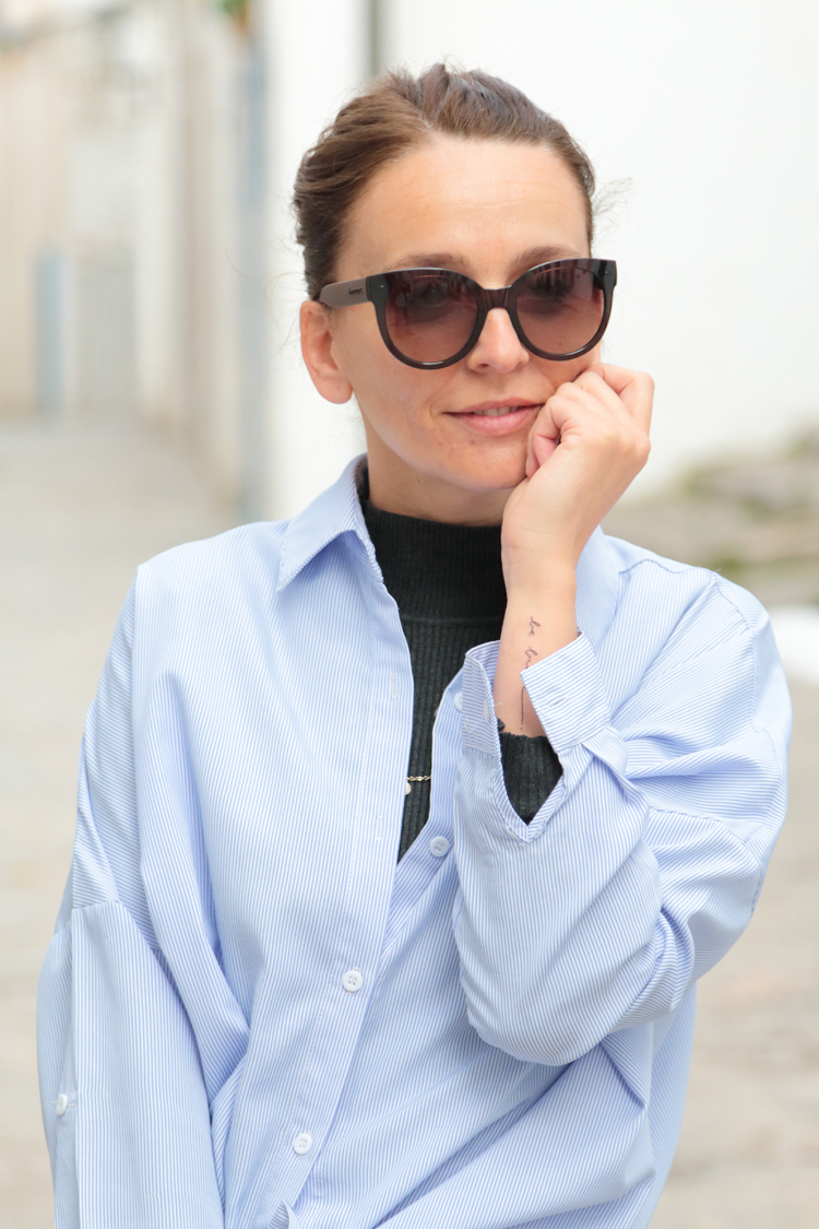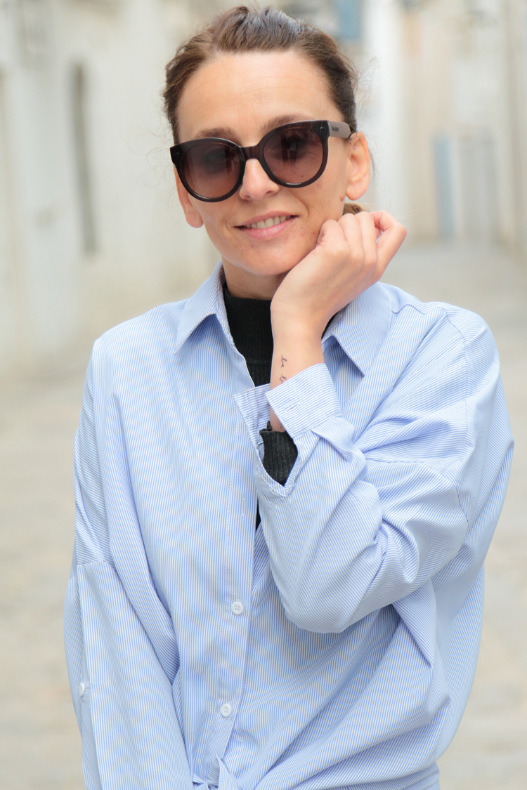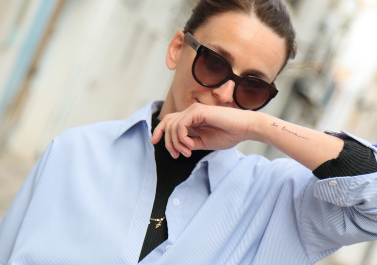 En cuanto al look excepto las gafas de sol y el collar con conchas doradas, el resto te resultará familiar. Los pantalones me los has visto en este look y también en este Y la camisa en realidad es un vestido camisero que lleva años en mi armario, la última vez que lo compartí en un look fue el pasado otoño pero hay bastantes más en la sección Looks de este blog.