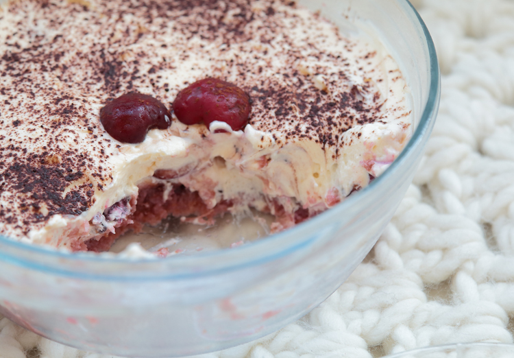Cuando estuve en las bodegas Ruinart la chef nos sorprendió a todas y todos con un postre que a mi particularmente me gustó un montón un Tiramisú de cerezas delicioso. Fue probarlo y pensar este postre lo tengo que hacer yo cuando vuelva a Ibiza. Si has hecho la receta de Tiramisú que está en el blog desde hace años y te gusta tanto como a mi, este también te resultará súper rico y con un punto veraniego por eso de utilizar fruta de temporada. La base de la receta es la misma lo único que se sustituye una capa de bizcocho por una de cerezas deshuesadas y partidas por la mitad.