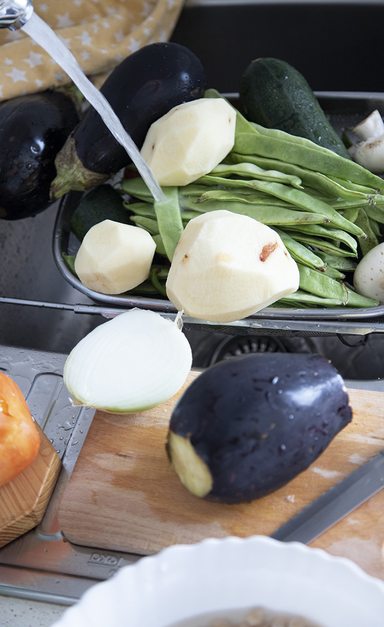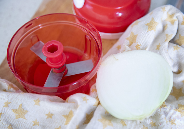 A finales de agosto cuando volvimos a Ibiza, no tenía ni idea de que de casa de mis suegris traía el que sería todo un descubrimiento gourmet: una picadora manual. ¿Por qué ha sido un descubrimiento? Porque hace que picar la verdura muy fina lleve mucho menos tiempo y que la tarea sea la mar de divertida, tiras de una cuerdecita como si fuera un yo-yo, en mi cuenta de Instagram puede ver como funciona. Además como tiene un tamaño mas bien pequeño, no ocupa espacio en el armario y lavarla es tan fácil como enjuagarla después de utilizarla, no hay que desmontar trastos varios ni nada parecido. Deja la verdura cortada en trozos finos como ves en las fotos pero no la aplasta (mami, nada que ver con la tuya, tienes que probar esta)