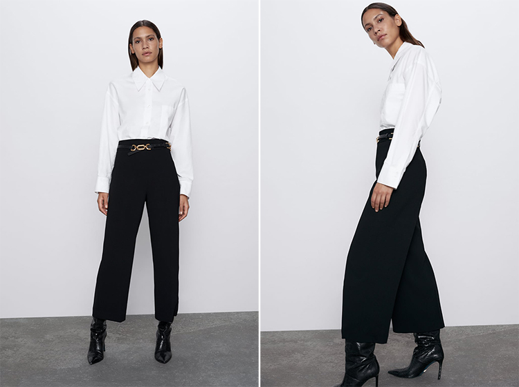 Look 3: Pantalón de tiro alto + Camisa Blanca + Cinturón + botines. Seguro que tienes un cinturón mono y una camisa blanca con lo que solo necesitarás este pantalón tan ideal para lograr este look.