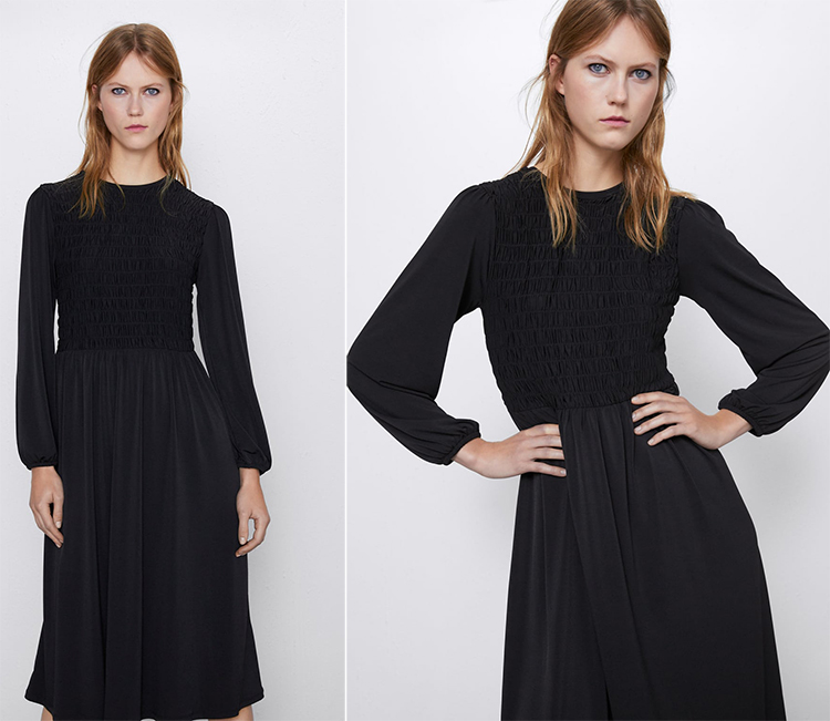 Con este vestido que está súper rebajado, conseguirás fácilmente un look ideal que puedes convertirlo en otro más ya que si pones sobre el vestido un jersey y un cinturón lo convertirás en Falda+ jersey Si sobre el llevas un abrigo de corte masculino le darás un contraste chulísimo. Echa un vistazo a este modelo: abrigo de paño corte masculino