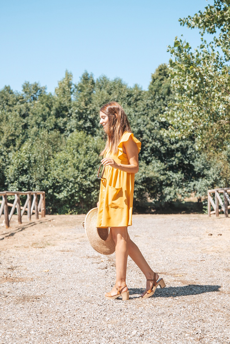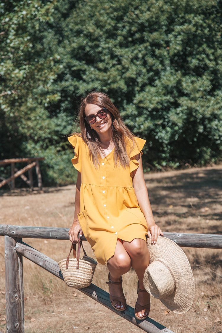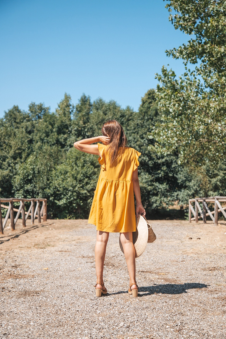 Este vestido mostaza lo estoy utilizando en multitud de ocasiones. El volante de los hombros y los bolsos y el corte holgado del vestido es lo que para mi lo hace especial, además de por el color.