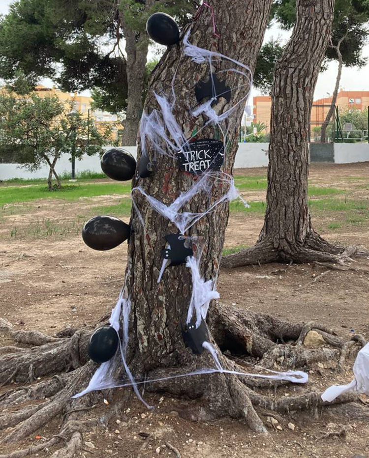 Este año volví a la temática de Halloween para la fiesta de cumpleaños de mi hija mediana. Aunque le dimos a elegir varios sitios Chloe decidió que quería celebrar su cumple de 10 años en un parque de Ibiza que cuenta con una amplia zona de mesas con árboles.