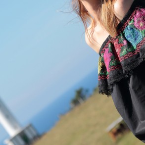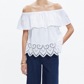 Camisa offshoulder con detalle de punto de cruz