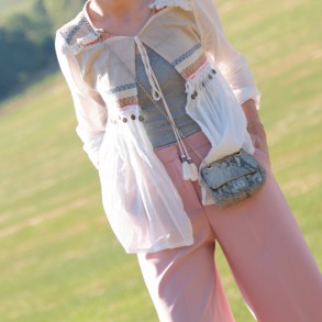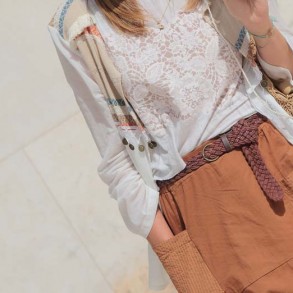 Sobrecamisa étnica y bolso de ganchillo