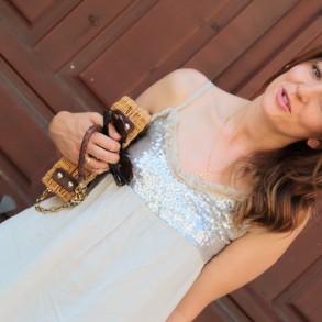 Vestido gris con paillets y flecos