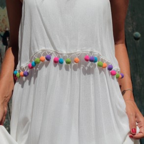 Vestido blanco con pompones